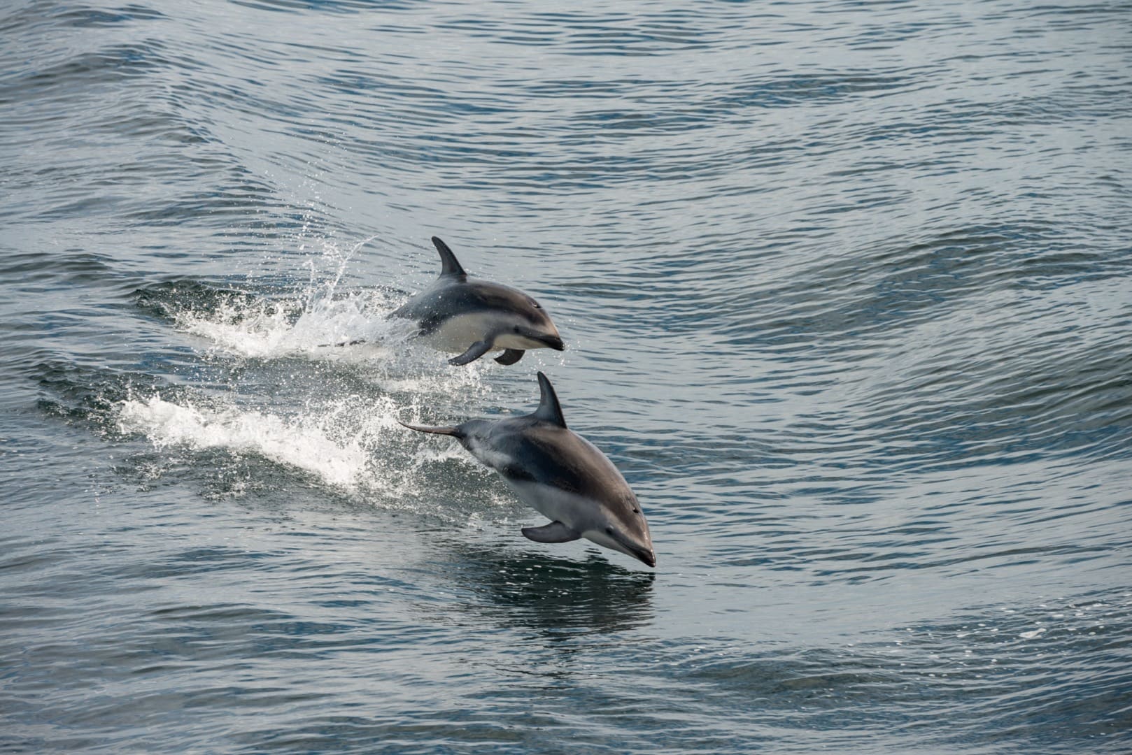 Delfine im Beagle Kanal, in der Nähe von Ushuaia, unserem Einschiffungsort auf dem Weg in die Antarktis (© Vreni & Stefan Gerber)