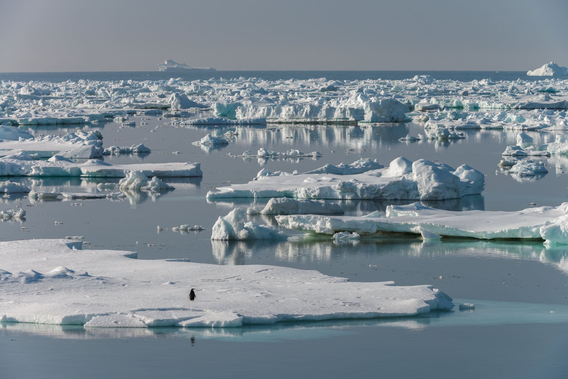 Zügelpinguin auf dem Meereis in der Bransfieldstrasse, im Norden der antarktischen Halbinsel (© Vreni & Stefan Gerber)