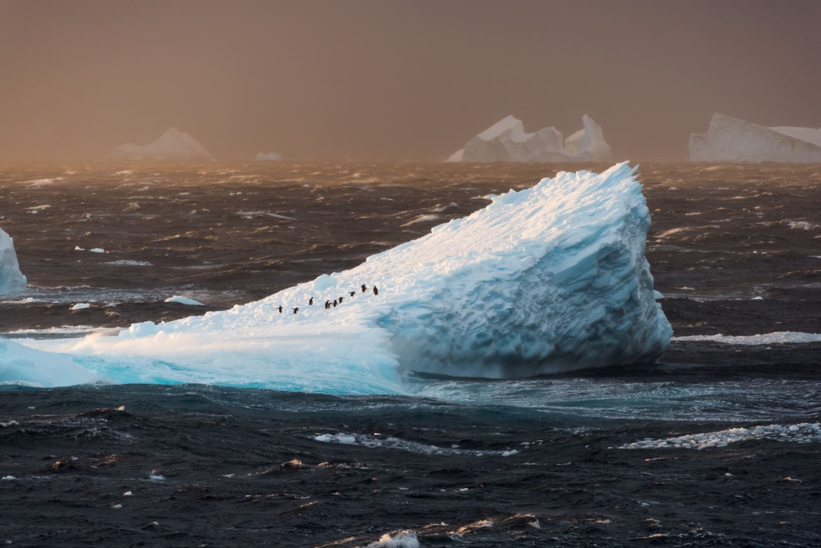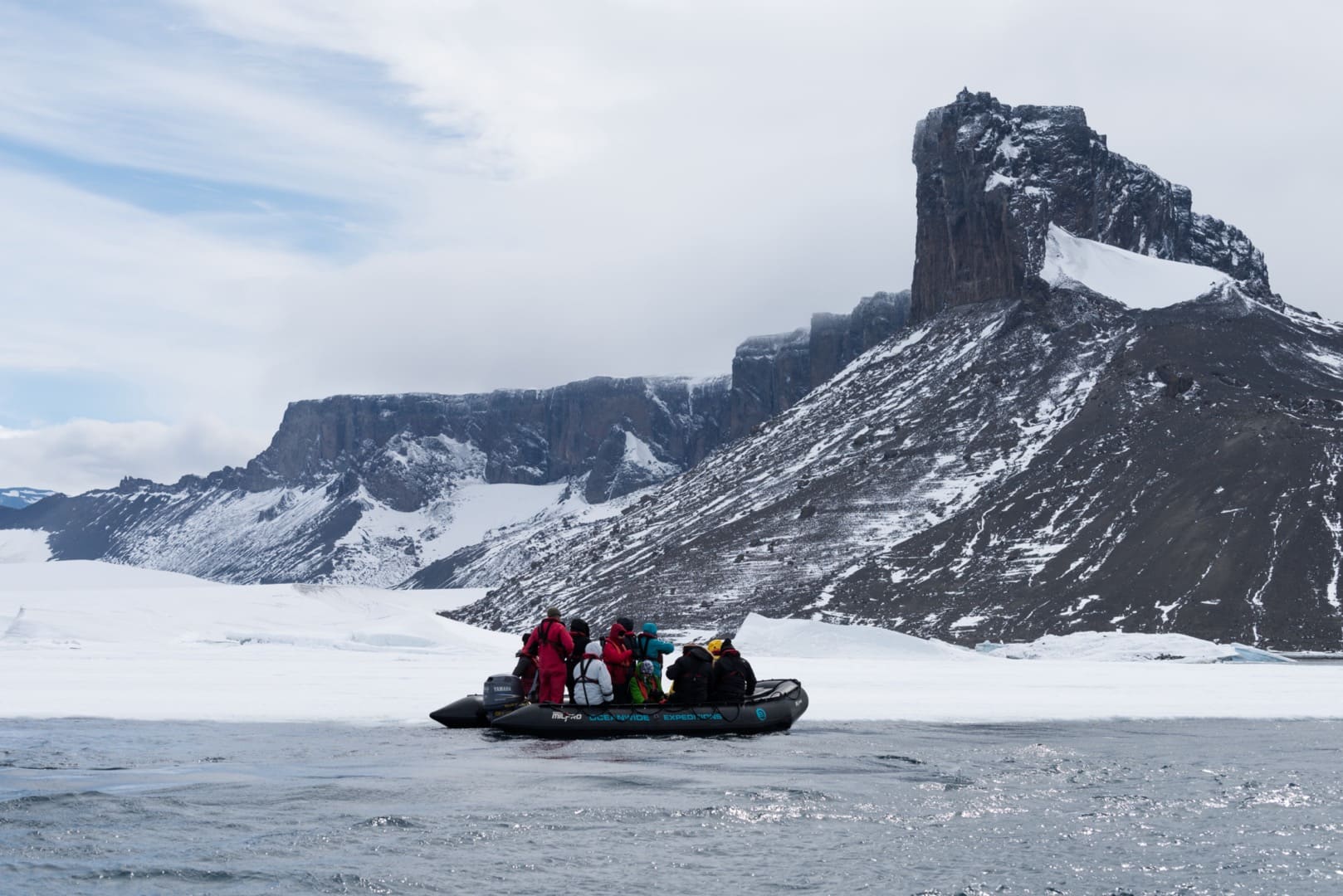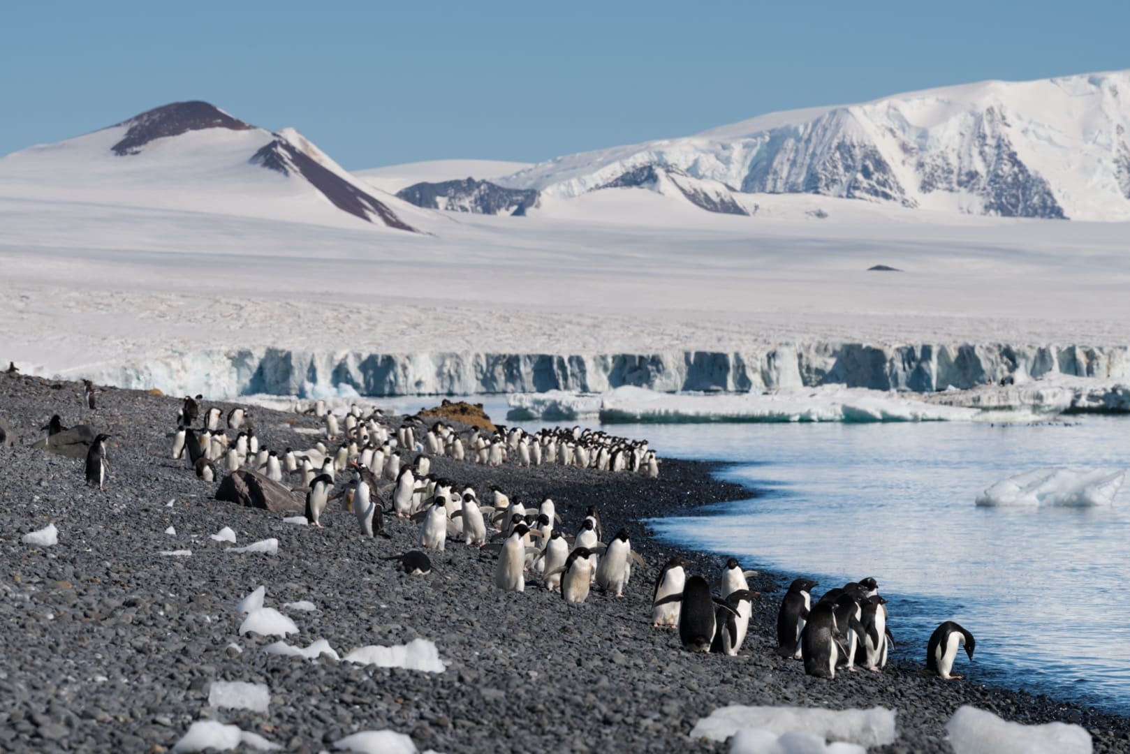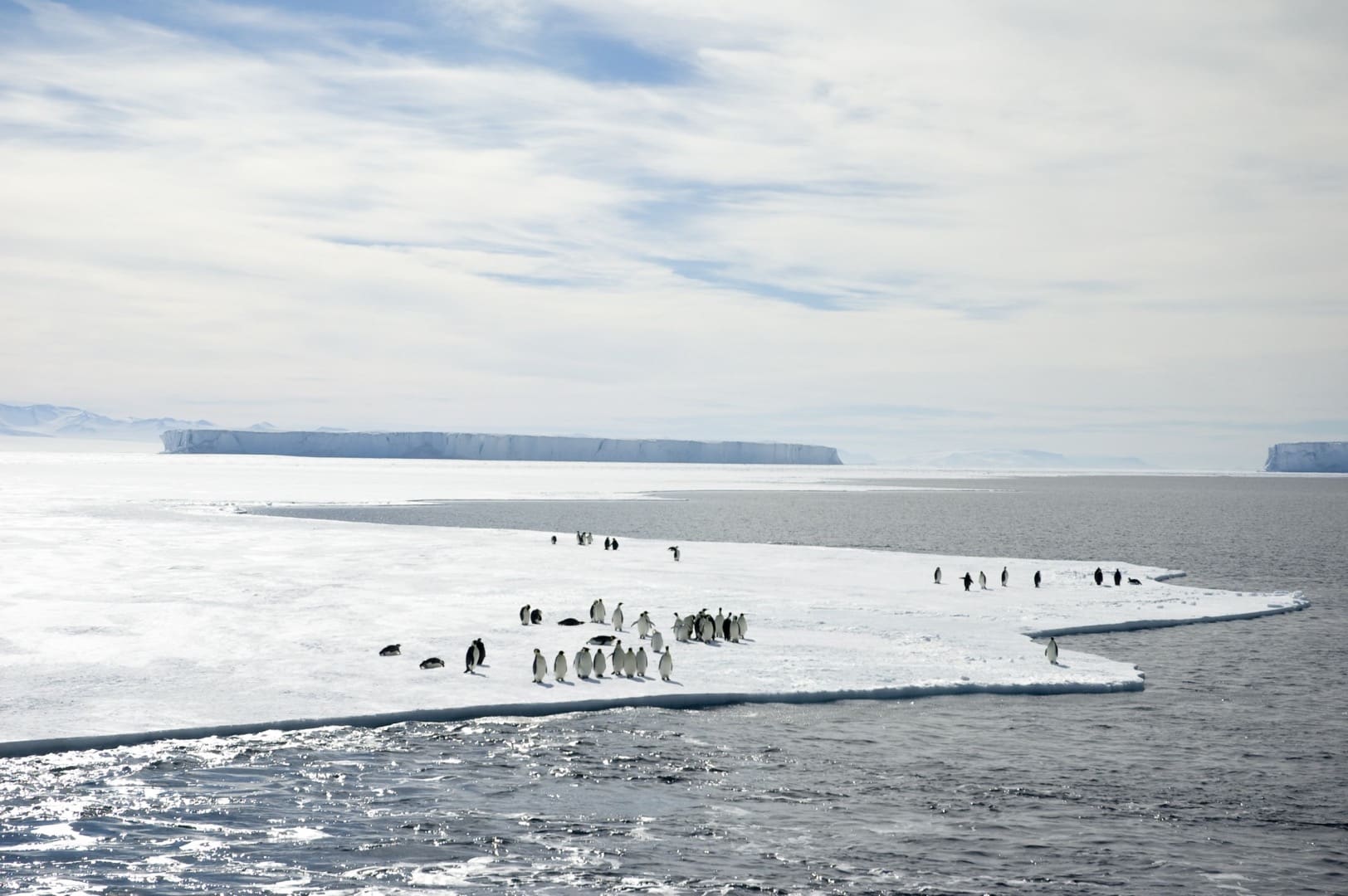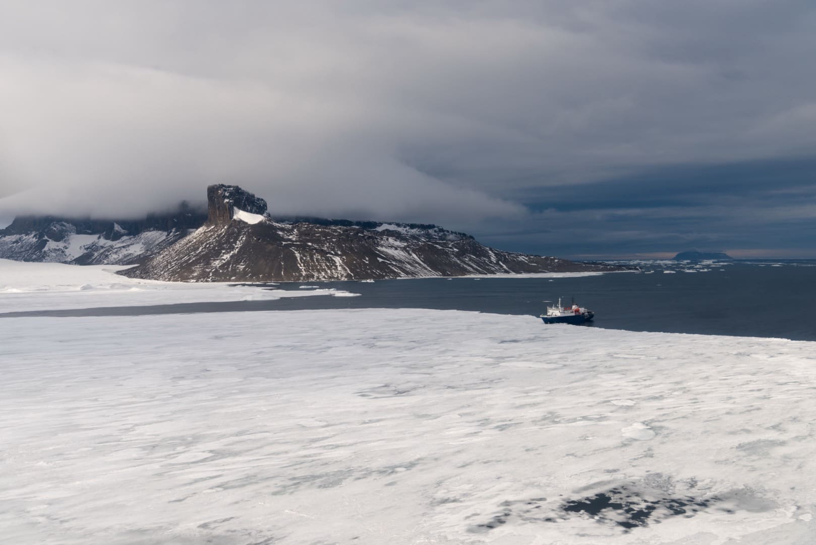 Östlich der antarktischen Halbinsel befindet sich das Weddellmeer, das grösste der 13 Randmeere des Südlichen Ozeans. Unübersehbar im Weddellmeer sind die gigantischen, haushohen Tafeleisberge, die eine Länge von über 100 Kilometern erreichen können! Wer eine Expeditionskreuzfahrt in diesen Teil der Antarktis macht hat gute Chancen Weddellrobben, Krabbenfresserrobben oder Seeleoparden anzutreffen. Auch Buckelwale, Zwergwale und Orcas sowie Adélie- und Eselspinguine sind hier häufig zu sehen. Der „Star“ des Weddellmeers ist jedoch der Kaiserpinguin, der grösste aller Pinguine. Bei Snow Hill Island im Weddellmeer findet sich eine Kaiserpinguin-Kolonie. Um sie zu erreichen sind Schiffe mit starker Eisklasse nötig, die mit Bordhelikoptern ausgestattet sind. Nur wenn die Eis- und Flugbedingungen stimmen kann die Kolonie besucht werden. Während der Helikopterflüge können wir die wunderschöne Landschaft aus einer anderen Perspektive geniessen. Einer der schönsten Orte im Weddellmeer ist Brown Bluff. Hier finden wir eine grosse Adéliepinguin-Kolonie und gigantische Steinwände und Felsbrocken, Formationen vulkanischen Ursprungs, von Schnee und Eis bedeckt.