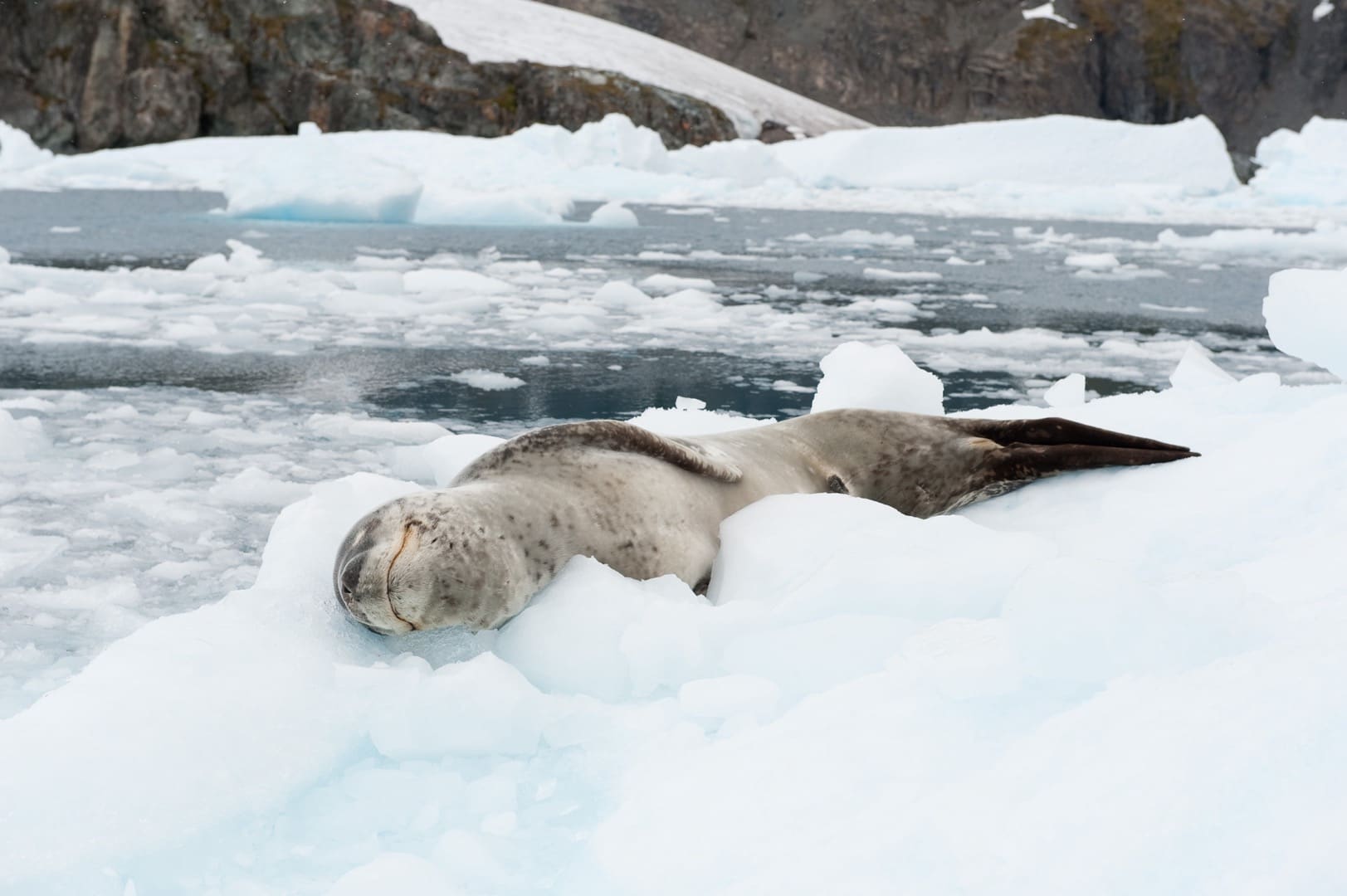 Seeleopard bei Cierva Cove, antarktische Halbinsel (© Vreni & Stefan Gerber)