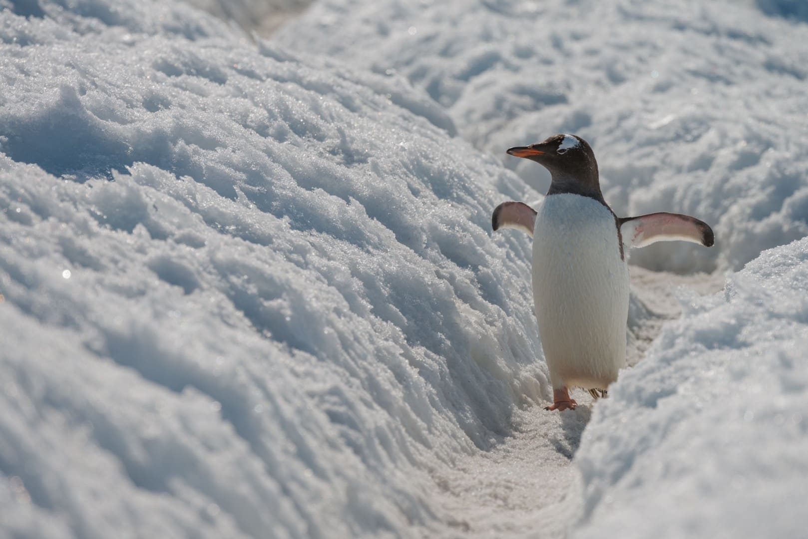 Eselpinguin auf einer "Pinguinstrasse" auf Trinity Island vor der antarktischen Halbinsel. (© Vreni & Stefan Gerber)
