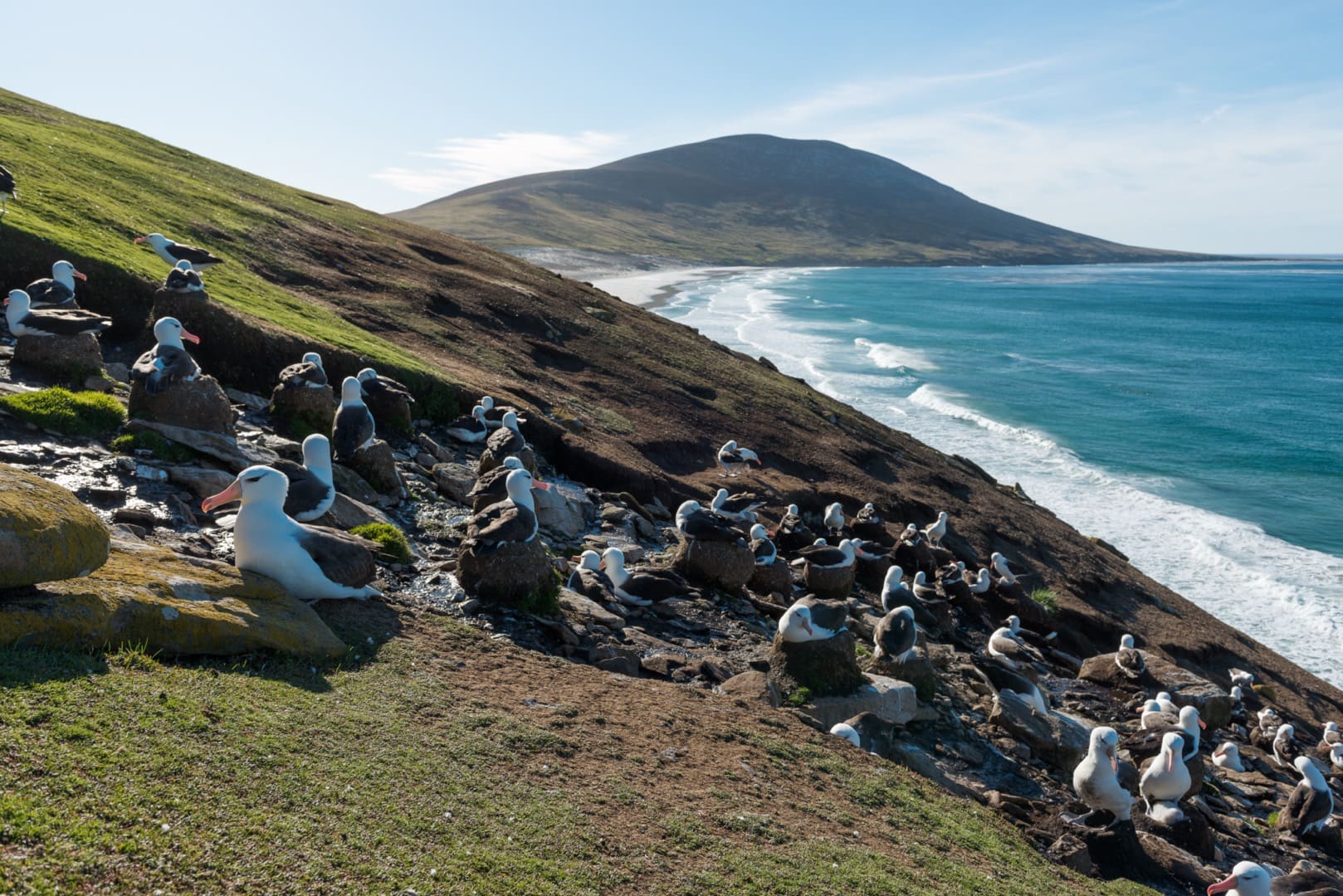 Schwarzbrauenalbatroskolonie, Saunders Island, Falklandinseln. (© Vreni & Stefan Gerber)