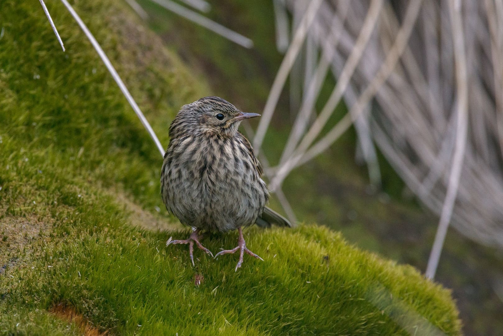 Riesenpieper auf Südgeorgien. Er kommt nur hier auf Südgeorgien vor und ist der einzige Singvogel der Region. (© Vreni & Stefan Gerber)