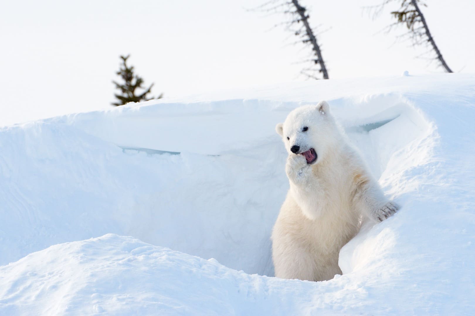 Im Wapusk Nationalpark kann man im Frühling die Eisbär-Babies beim Verlassen der Geburtshöhlen beobachten. (© Andre Anita)