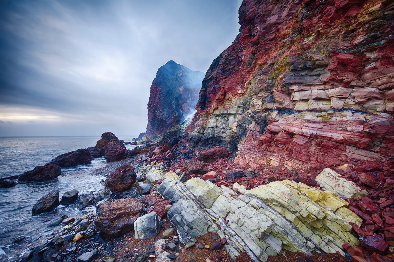 - Smoking Hills: rauchende eindrucksvolle ocker- und purpurfarben gefärbte Klippen