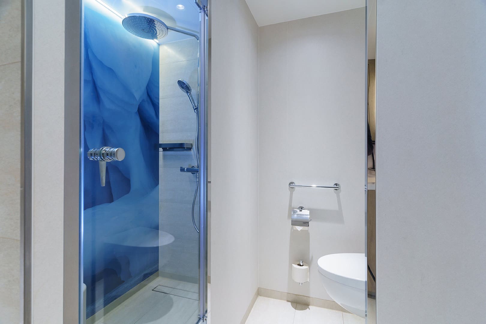 Die Ultramarine verfügt über insgesamt 103 moderne Kabinen und Suiten, ein Grossteil davon hat einen eigenen Balkon. Alle Kabinen verfügen über Bodenheizung, TV und Kühlschrank.