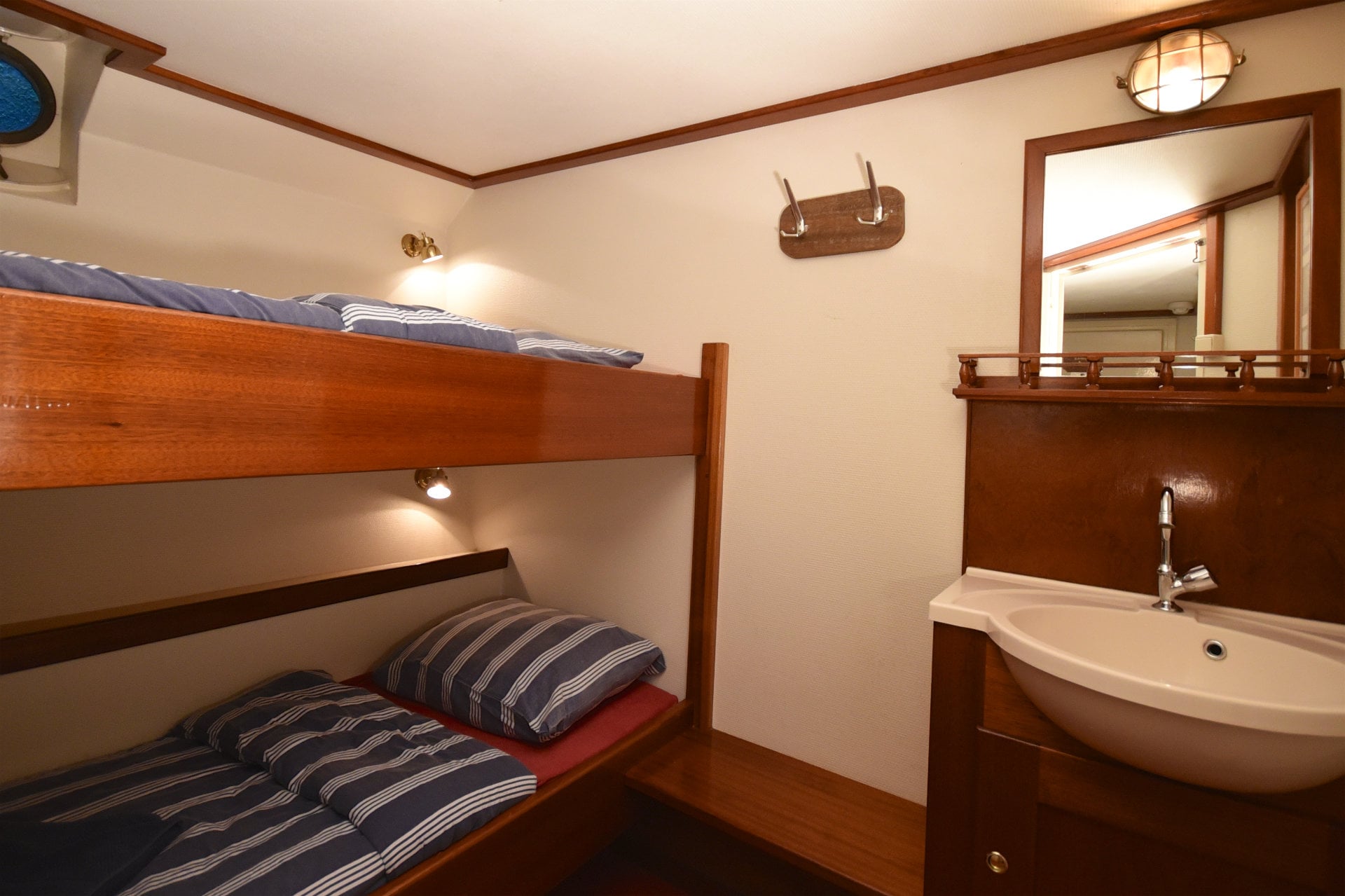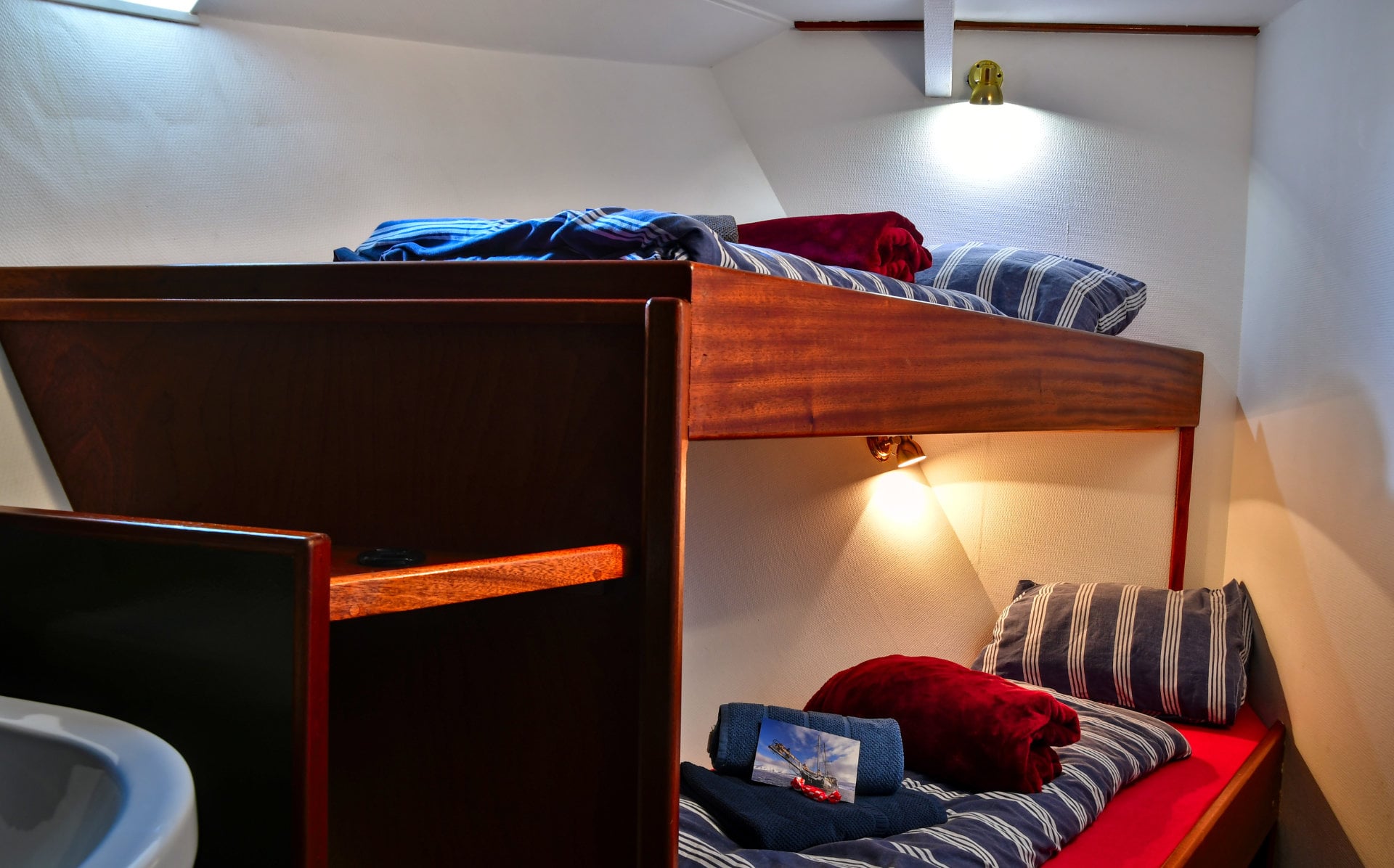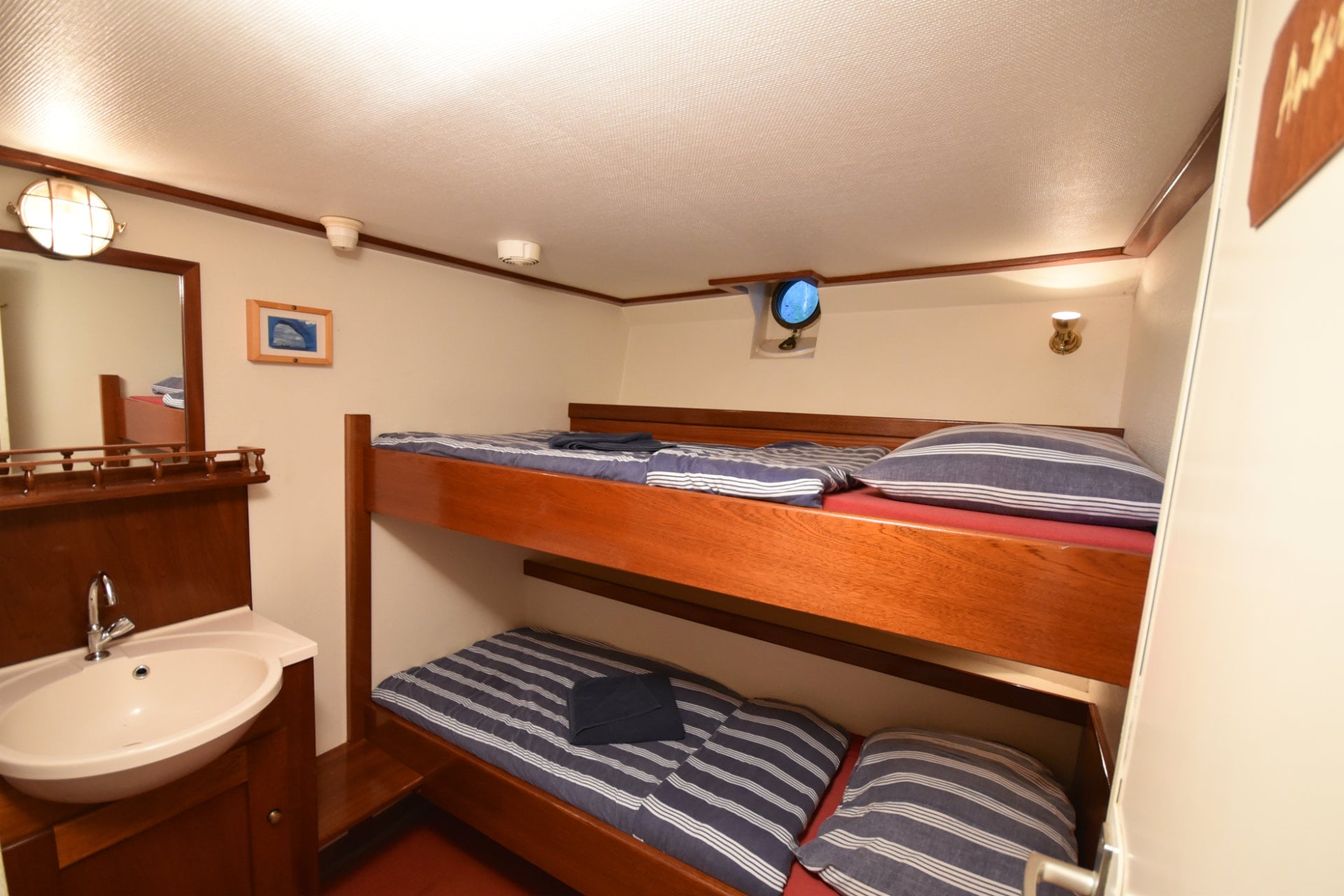 Das Schiff bietet ausreichend Raum für maximal 12 Passagiere in 6 Zweibettkabinen mit Bullauge. Jede Kabine ist mit einem Stockbett für zwei Personen ausgestattet. Die beiden Komfort-Kabinen sind mit eigenen Nasszellen mit Dusche/WC ausgestattet. Die regulären Kabinen verfügen über ein Waschbecken. Die Passagiere in diesen Kabinen teilen sich zwei Duschen und Toiletten auf dem Gang.